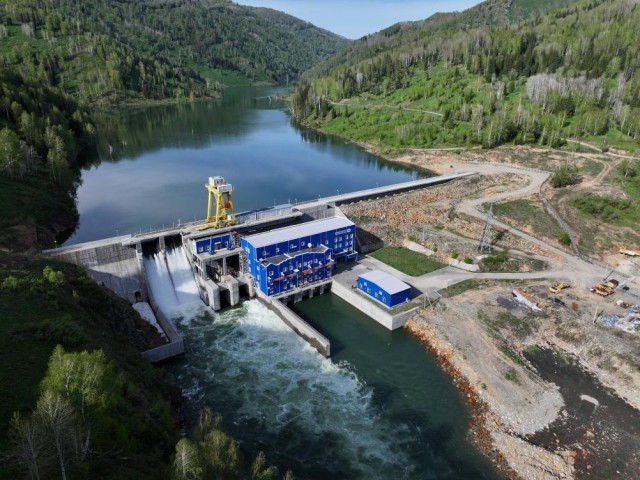 这是5月8日在哈萨克斯坦东哈州拍摄的图尔古孙水电站(无人机照片)。 新华社记者李任滋摄
