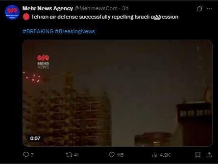 伊朗媒体发布“德黑兰防空系统成功击退以色列侵略”画面