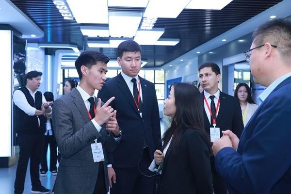 4月14日,宁夏银川,中亚青年代表走进宁夏大学国家大学科技园,参观园区数字化展厅、数字化模拟实验室等空间。共青团宁夏回族自治区委供图