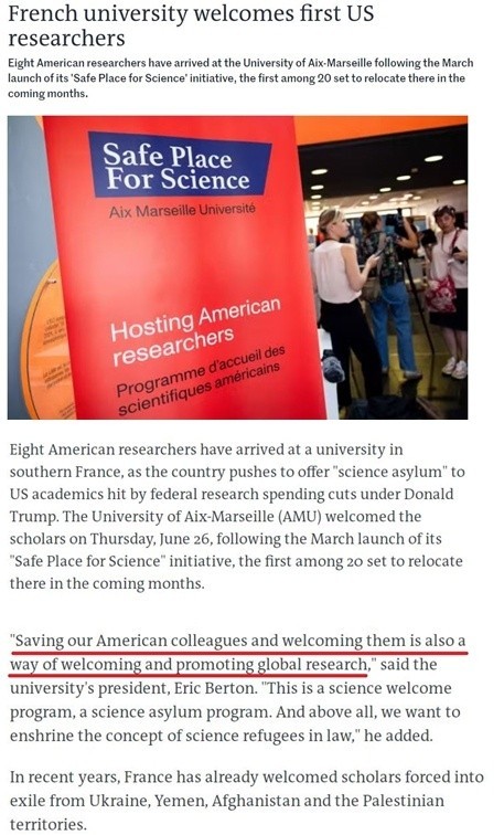 用艾克斯-马赛大学校长埃里克·伯顿的话说,“拯救并欢迎我们的美国同事也是促进全球科研事业的一种方式”。
