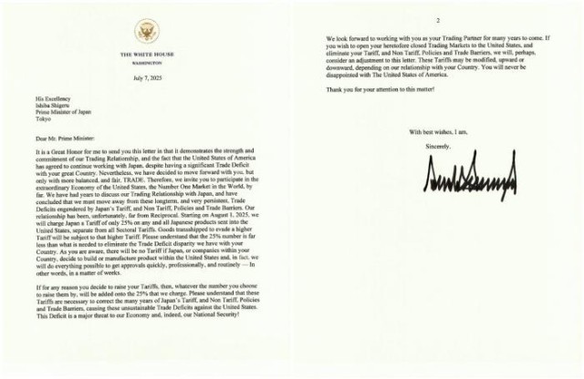 7月7日,日本成为首批收到美方通知的国家,信中称“美日关系远非对等”,并宣布将对日本输美商品单方面加征25%的关税。《日经亚洲》评论称,这封信粉碎了日本对两国间“特殊关系”的幻想。