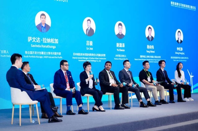 7月16日,江苏苏州,2025年世界青年发展论坛绿色消费与可持续发展主题论坛上,在青年对话环节,中外青年代表就青年消费新场景、新业态议题发表看法。主办方供图