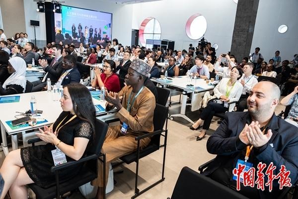 7月16日上午,江苏苏州,2025年世界青年发展论坛人工智能与科技创新主题论坛上参会的各国青年代表。当日,2025年世界青年发展论坛举行人工智能与科技创新主题论坛,各国青年代表就相关议题展开交流。中青报·中青网记者 李隽辉/摄