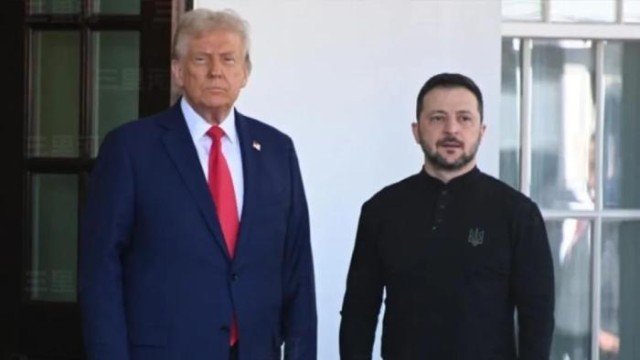 当地时间2月28日,华盛顿,美国总统特朗普与乌克兰总统泽连斯基在白宫会晤时发生争吵,不欢而散。图为特朗普在白宫迎接泽连斯基抵达。中新社记者 陈孟统 摄