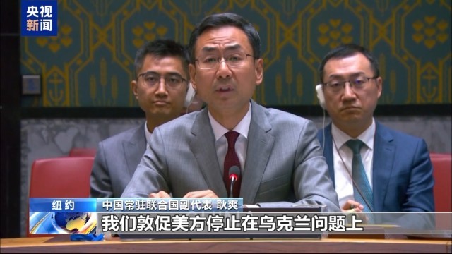 中国常驻联合国副代表 耿爽:中国不是乌克兰危机的制造者,也不是当事方。中国从未向冲突任何一方提供过致命武器,始终严格管控军民两用物项,包括无人机的出口。我们敦促美方停止在乌克兰问题上“甩锅”推责,制造对立,多为停火止战,劝和促谈做出一些切实的努力。