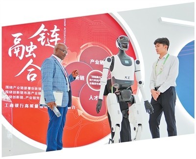 7月16日,观众在第三届中国国际供应链促进博览会上了解人形机器人。