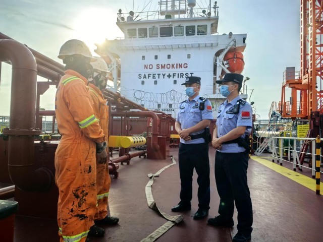 运输沥青的小型船舶抗风浪能力较弱、船期灵活,多承担短途运输任务,其船员、航线相对固定,针对这一特点,洋浦边检站优化查验流程,采用“无感通关”服务模式,开启线上信息核查与风险评估,船舶作业完毕、手续办结,即可离港,避免出现空窗期。