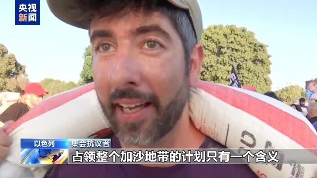 集会抗议者:我们今天来到这里是为了抗议以色列政府占领加沙,他们实施了22个月的彻底破坏,种族灭绝和饥饿政策,现在说唯一的解决方案是占领加沙。