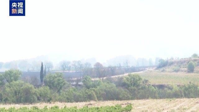 总台记者 陈明磊:我现在所处的位置是在法国南部的奥德省,也是此次山火的重要的起火点之一。在我身后,大家可以看到冒出滚滚浓烟的地方就是正在燃烧的山火,我们在现场可以闻到很浓的烧焦的味道。