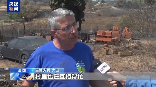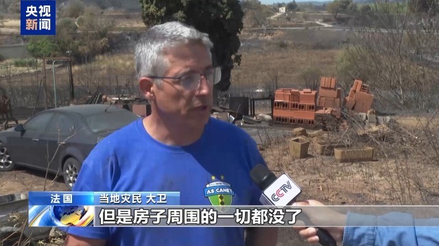 总台记者 陈明磊:此次在法国南部发生的山火严重影响了当地居民的生活。我现在所在的区域受灾较为严重,我所在的这个小院子,由于离当时的火场比较近,造成的损害更加触目惊心。当地政府也建立了17个临时的安置点,用于安置灾民。
