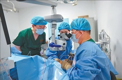 2025年7月,中国医生正在为当地民众做白内障手术。 本报记者 管克江摄