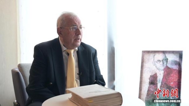 近日,约翰·拉贝之孙托马斯·拉贝在北京接受中新社记者专访。中新社记者 刘超 摄