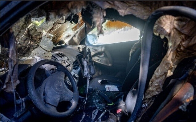 当地时间9月3日,抗议者在以总理官邸附近纵火,一辆汽车被烧毁。图源:以媒
