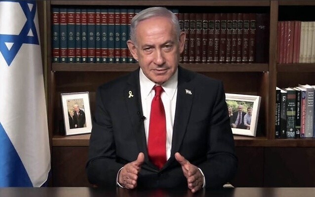 当地时间9月3日晚,内塔尼亚胡发表视频讲话。图源:以媒