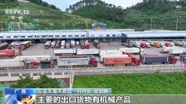 友谊关海关查验一科科长 梁恒鹏:每天大约有1500辆大货车报关进出境,主要的出口货物有机械产品以及工业原材料、零部件等。而进口的货物主要是水果和电子产品等。