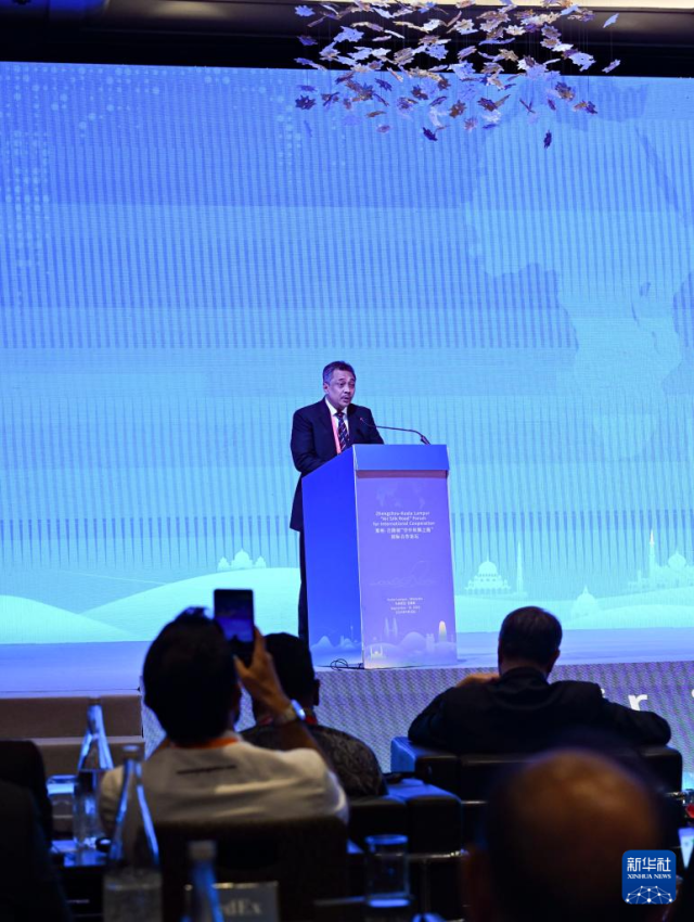 这是9月18日在马来西亚吉隆坡国际机场举行的郑州-吉隆坡“空中丝绸之路”国际合作论坛上拍摄的马来西亚交通部长陆兆福。新华社记者 程一恒 摄
