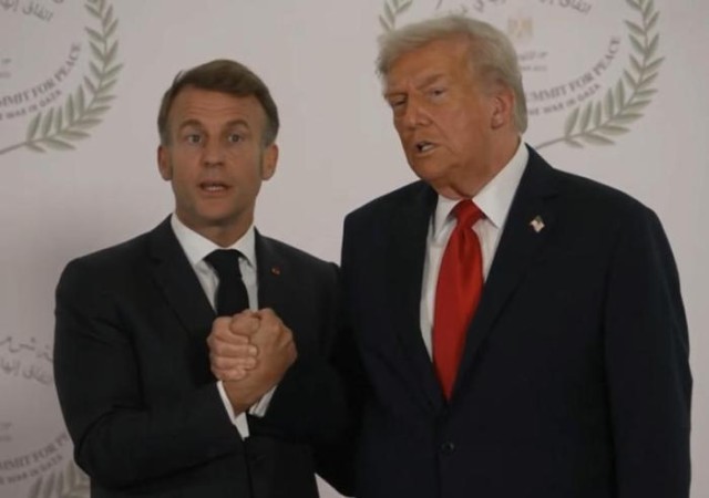 外媒:特朗普再现“掰腕”式握手 “硬控”马克龙达26秒