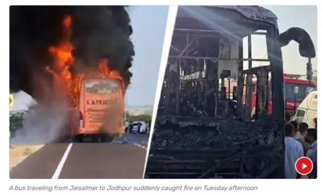 中新网10月15日电 综合印度媒体报道,当地时间14日,印度西部拉贾斯坦邦一辆客车在行驶途中起火,造成至少20人死亡、16人受重伤。