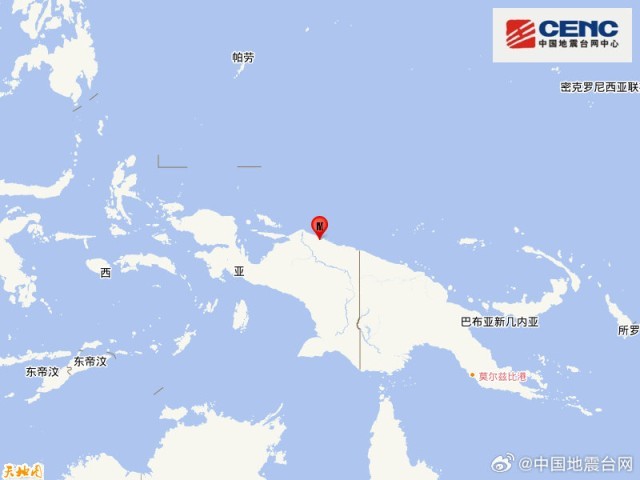 印尼巴布亚省发生6.5级地震 震源深度10千米