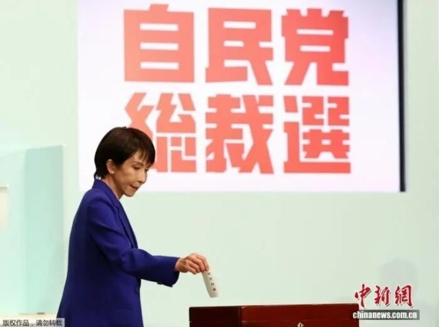 资料图:当地时间10月4日,日本执政党自民党总裁选举结果揭晓,高市早苗成功当选自民党新一任总裁。图为高市早苗在日本执政党自民党总裁选举中投票。