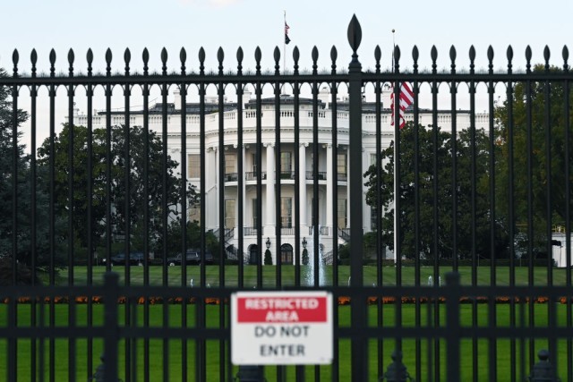 10月21日,在美国华盛顿,人们在白宫前。新华社记者李睿摄
