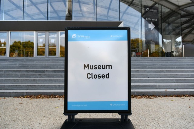 10月21日,公告牌显示位于美国华盛顿的美国国家航空航天博物馆因联邦政府“停摆”而关闭。新华社记者李睿摄