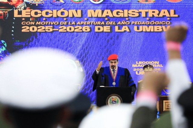当地时间2025年9月30日,委内瑞拉加拉加斯,委内瑞拉总统尼古拉斯·马杜罗在一次军事会议上发表讲话。马杜罗表示,在美国对疑似委内瑞拉运毒船只进行一系列致命袭击后,他准备宣布进入紧急状态,以应对美国“侵略”的威胁。视觉中国 图