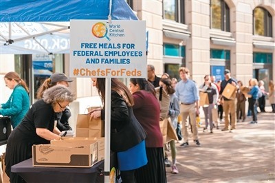 近日,在美国首都华盛顿,联邦雇员排队领取免费食物。因联邦政府“停摆”,大批联邦雇员不得不停薪休假或无薪上班。新华社记者 胡友松摄