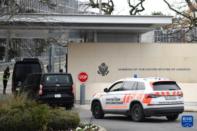 11月23日,在瑞士日内瓦,外交车辆进入美国常驻联合国日内瓦办事处代表团驻地。新华社记者 连漪 摄