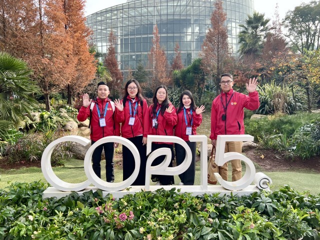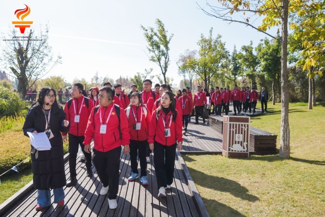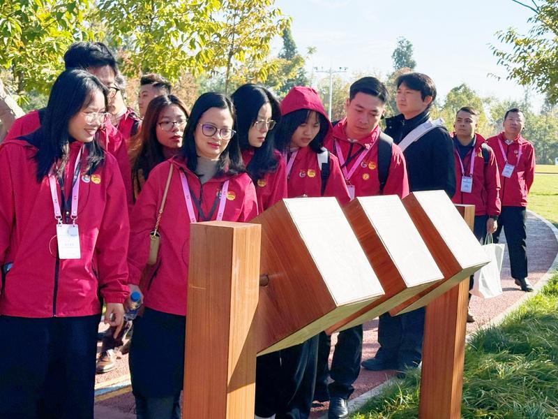 12月1日,云南昆明,参加越南青年来华“红色研学之旅”之“理想之光”研学营的越南青年参观宝丰半岛湿地公园。该公园东岸以林带建设为主,西岸以恢复自然生态为主,培育了大量珍稀动植物,是联合国《生物多样性公约》第十五次缔约方大会(COP15)永久性成果展示点。主办方供图