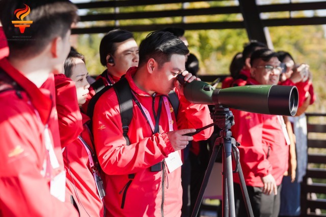 12月1日,云南昆明宝丰半岛湿地公园,越南青年排队观测园内白鹭。主办方供图