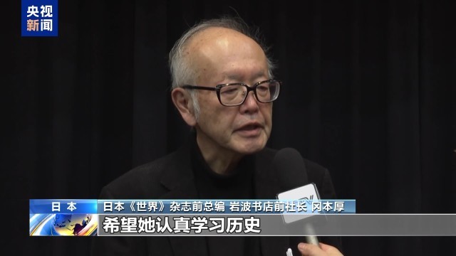 日本《世界》杂志前总编、岩波书店前社长冈本厚 冈本厚:希望她认真学习历史,学习宪法和法律,也要学习一直以来的中日关系。要把这些都真正学进去,然后在反复思量、慎重考虑、再三思考的基础上发表言论。
