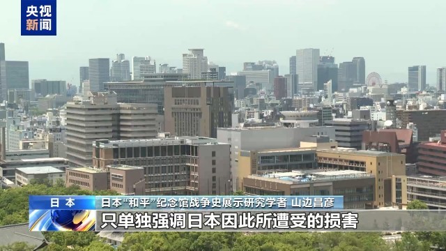 日本“和平”纪念馆战争史展示研究学者 山边昌彦:大阪国际和平中心曾经一度还仔细展示“加害”方面内容,但这些展示遭到了攻击,最终在大约1990年前后停止了这类内容,转而只展示大阪等地空袭的受害情况。毕竟日本原本是发动对外战争的一方,如果撇开这一事实,只单独强调日本因此所遭受的损害,我认为这是有问题的。