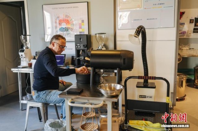 2025年10月,弗兰克在烘焙咖啡豆。 (受访者供图)