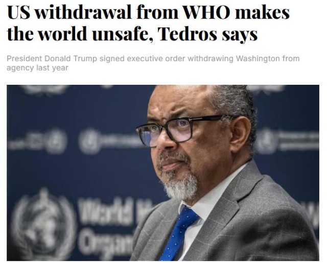 据报道,谭德塞表示,他对此决定“深感遗憾”,并指出其影响将远超美国本土范围。