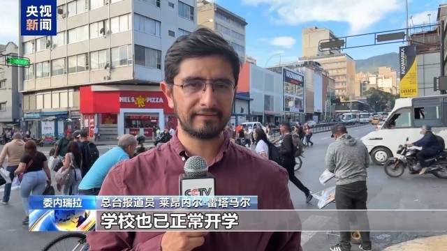 总台报道员 莱昂内尔·雷塔马尔:在相关社会动员持续进行的同时,城市正逐步恢复日常节奏。商业和交通运行基本正常,学校也已正常开学,委内瑞拉方面表示这种日常生活的延续同样也被视为对外来侵略的一种回应方式。