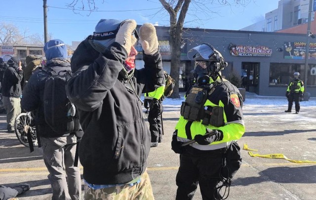 这是1月24日在美国明尼苏达州明尼阿波利斯市拍摄的示威抗议现场。新华社发
