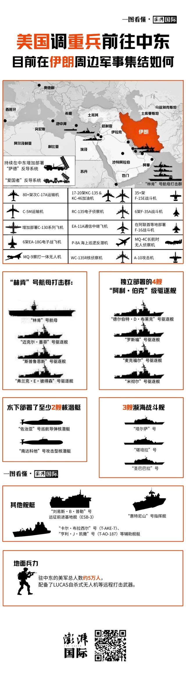 那么,目前美军伊朗周边军事集结如何?美军派出了哪些主力装备?