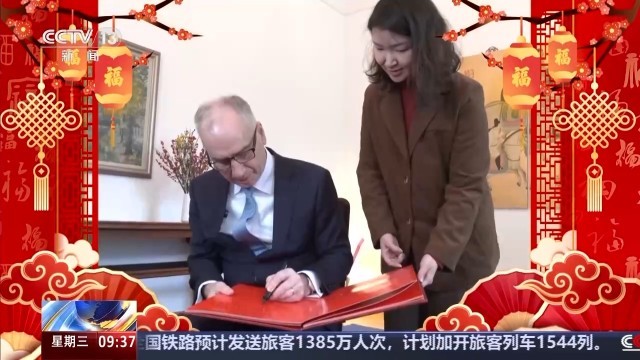 爱尔兰驻华大使欧博仁,在二十年前曾担任爱尔兰驻上海总领事。今年,则是他作为驻华大使,第二次在中国过春节。欧博仁说,“马”在中爱两国文化中都有奋进的寓意,中国和爱尔兰都爱好和平、开放包容、自立进取。爱尔兰今年将担任欧盟轮值主席国,欧博仁也期待新的一年继续巩固中爱双边关系,并进一步深化、发展中欧关系。