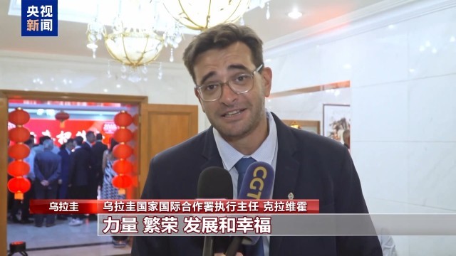 乌拉圭国家国际合作署执行主任 克拉维霍:值此新春佳节,向全体中国人民致以热情的拥抱与问候,愿马年带给中乌两国人民力量、繁荣、发展和幸福。乌中关系正值历史最佳时期,我们在马年将继续共同努力,推动乌中关系更上一层楼。