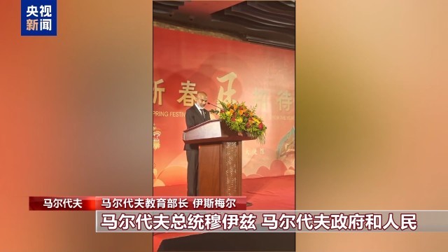 马尔代夫教育部长 伊斯梅尔:我倍感荣幸能够与各位共同参加隆重而喜庆的中国春节庆祝活动。我谨代表马尔代夫总统穆伊兹、马尔代夫政府和人民,向各位致以最热烈的问候和最诚挚的祝福。