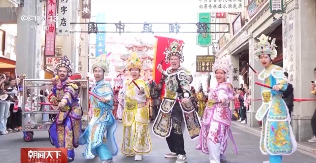 外国游客也加入了巡游的队伍,体验最燃的中华战舞。
