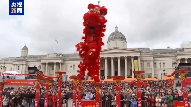 总台记者 杨兢兢:我现在是在英国伦敦特拉法加广场的中国新春庆典上,活动每年吸引近80万人参与,被认为是亚洲以外规模最大的春节庆祝活动。