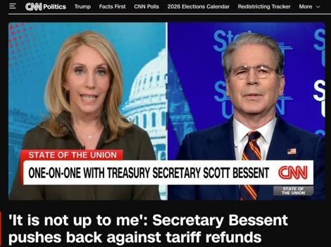 还有一个更现实的“回避点”:贝森特在镜头前把退款说成“不是关键问题”,这其实是在把政治风险与财政风险同时后推。因为一旦承认“应该退”,接下来就会面临三个更尖锐的问题:退给谁?退多少(含不含利息)?退款的钱从哪里出?这些都不是一句“等法院”就可以遮过去的。当天,多家媒体引述贝森特接受采访时的表述,称“退款由下级法院处理”,这与其说是法律判断,不如说是政治姿态,即在不承诺的前提下,把主动权留给时间。