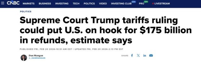这场围绕IEEPA关税的“退税大战”,法律角度看,是最高法院把税收权拉回国会和专门贸易法院;财政角度看,是企业与财政部围绕上千亿美元现金流展开的拉锯;政治角度看,则是特朗普团队在不情愿认输的前提下,通过话术和新关税,把法律挫败包装成对内继续强硬的机会。正是在这样的框架下,贝森特“这不是关键问题”的回答,恰恰暴露了关键所在:关税退不退,已经成为这届美国政府最不愿正面回答、但又绕不开的核心问题。