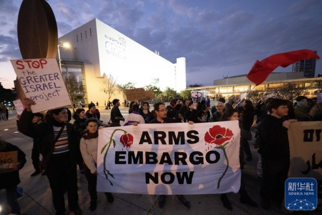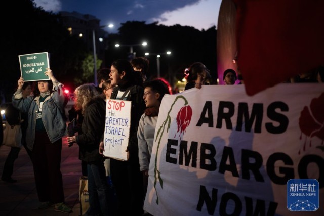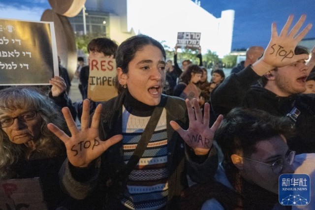 3月7日,人们在特拉维夫的一处广场举行集会,抗议以色列的军事行动,要求以色列停止战争行为。