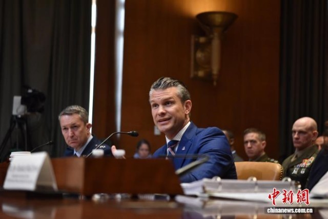 2025年6月11日,美国国防部长赫格塞思就2026财年国防部预算出席国会参议院拨款委员会听证会。 中新社记者 沙晗汀 摄