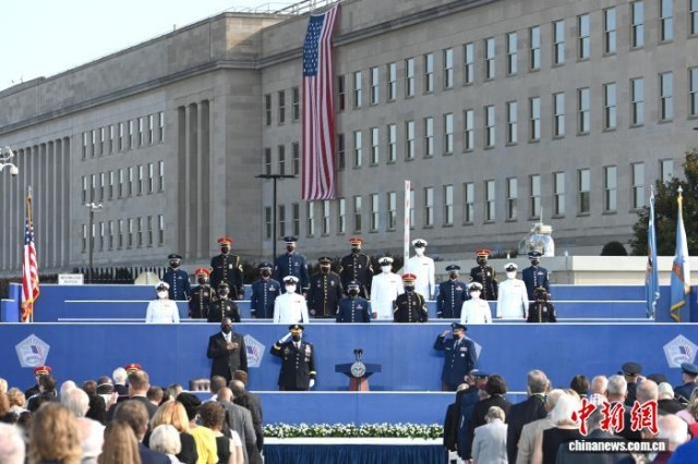 2021年9月11日,美国五角大楼举行“9·11”事件20周年纪念仪式。 中新社记者 陈孟统 摄