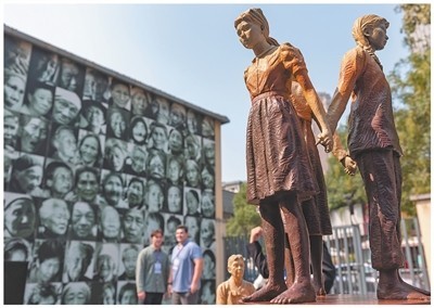 中国江苏南京利济巷慰安所旧址陈列馆“慰安妇”主题雕像。