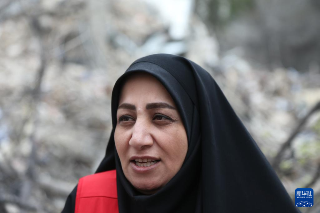 3月23日,伊朗红新月会国际事务副主席阿利什万迪在位于德黑兰北部一处遭袭现场接受新华社记者采访。新华社记者 沙达提 摄
